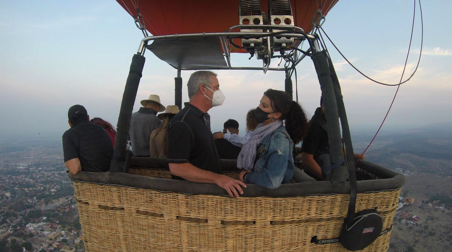Posterior a esto se llega al punto de despegue para realizar la actividad. Arriba en el aire son un promedio de 45 a 60 minutos en el aire (puede variar dependiendo la condiciones del viento y decisión de nuestro piloto). Tratamos de sobrevolar la ciudad y/o lo más cerca posible para apreciar el centro histórico desde las alturas.